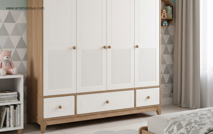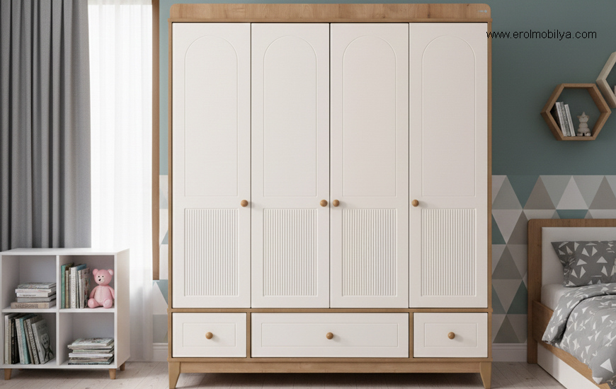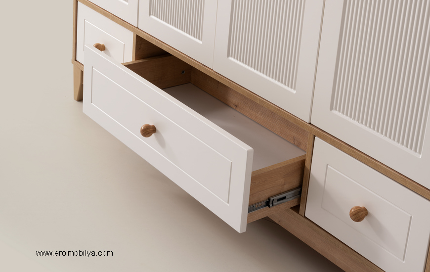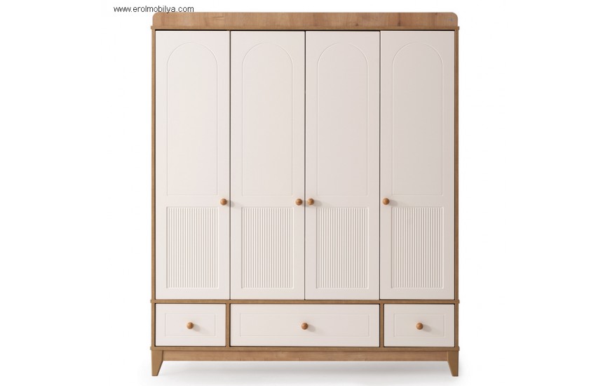 Ürüne Ait Parça Adetleri : 4 Kapılı Gardırop Ürün Özellikleri; ÜRÜN RENGİ : KREM - MEŞE * TSE * ISO 9000 * E1 Belgesi ( Kansorojen Madde İçermez ) * E0 Belgesi ( Kurşun İçermez ) * İnsan , Çevre ve Güvenlik Üçgeninde Üçlü Sorumluluk Bilinci * Üretiminde Gövde Kısmı E-1 Kalite Belgeli Melamin Yonga Levha , Ön Kapak ve Çekmece Yüzeylerinde MDF Kullanılmaktadır. * Çekmecelerde Çift Açılım Teleskopik Ray Kullanılmaktadır * Tamamen Demonte ve Yarı Demonte Olarak Üretim |