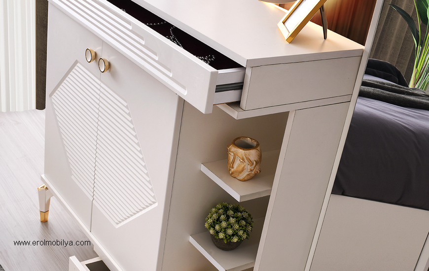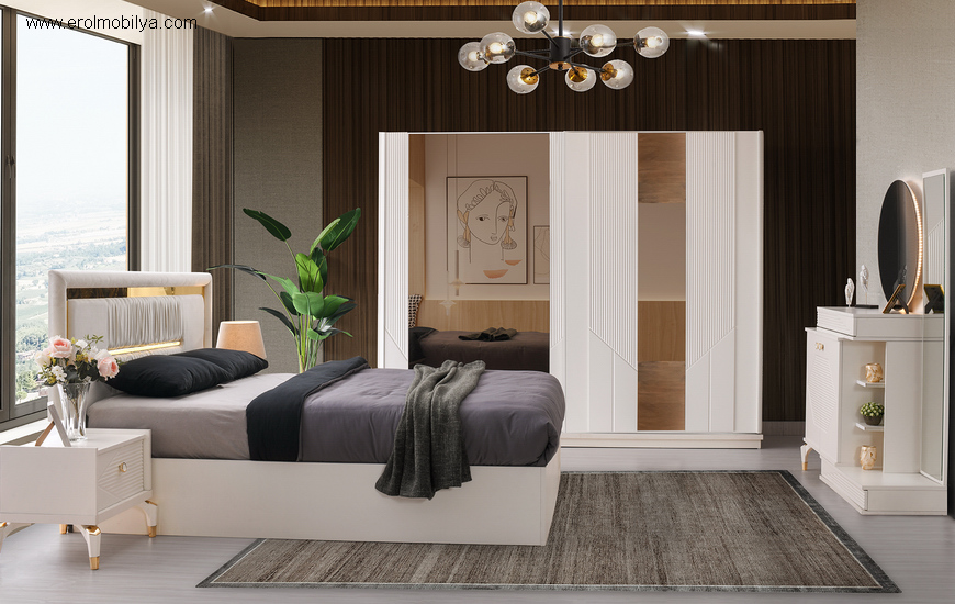 Ürüne Ait Parça Adetleri : Sürgülü Dolap, Şifonyer + Aynası, 2 Adet Komodin, Başlık