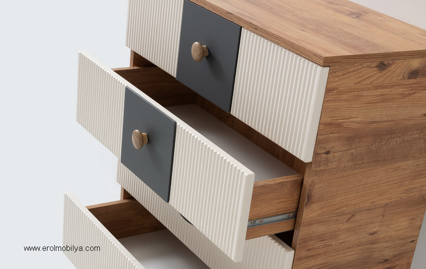 Ürüne Ait Parça Adetleri : Şifonyer ÜRÜN RENGİ : CEVİZ - KREM - ANTRASİT